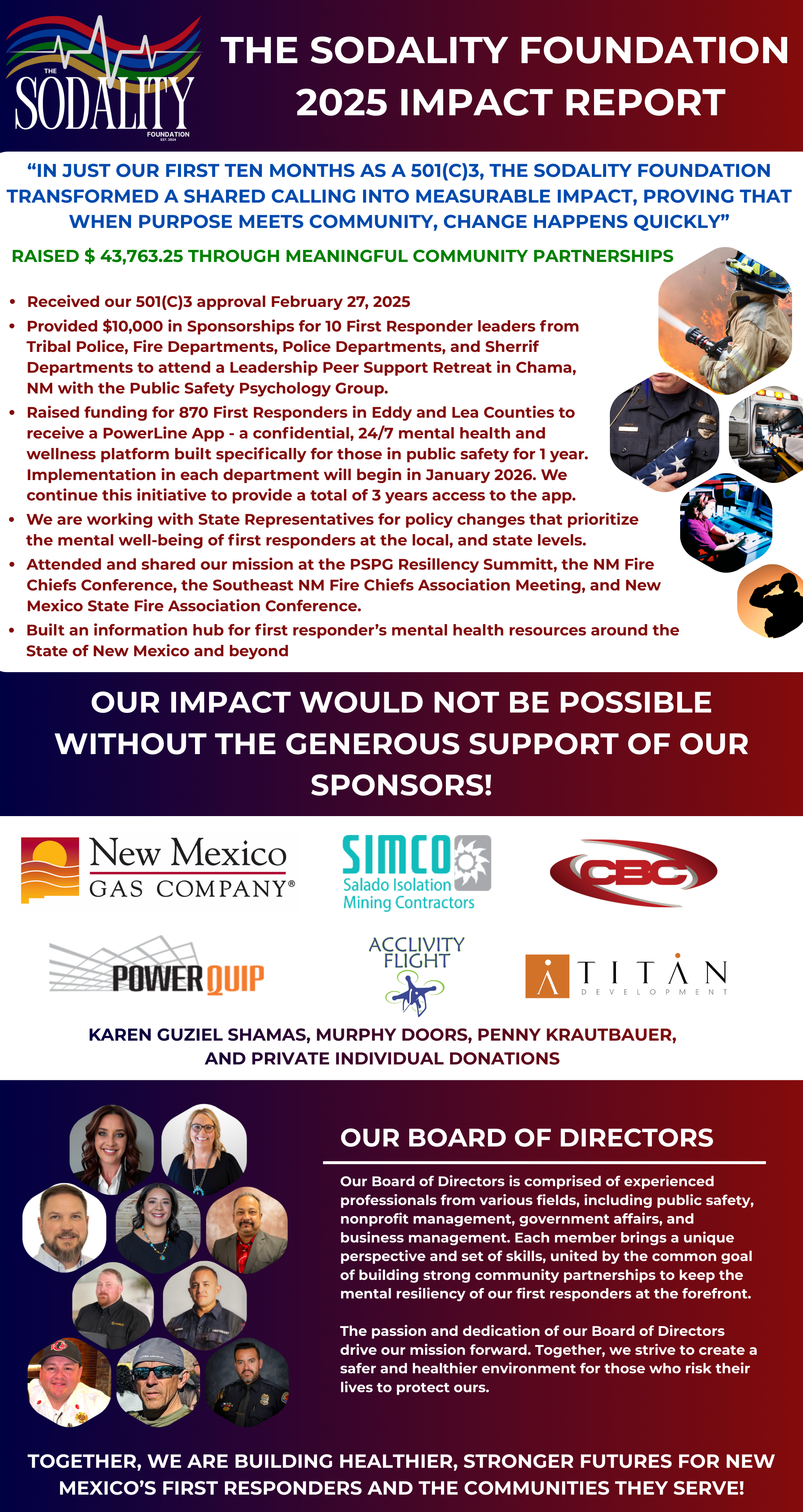 Our nonprofit organization was founded with a desire to impact the lives of New Mexico’s first Responders by providing the funding assistance they deserve to cultivate a culture where mental well-being is safeguarded.